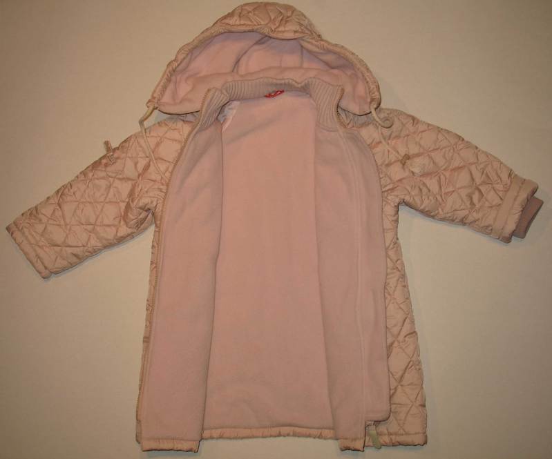 Пальтишко стеганое, торгового бренда Mariquita, р.104, на флисовой подкладке с утеплением, с манжетом, длинна от плечевого шва 60 см, длинна рукава !! от горловины!! 44 см, ширина по талии 43 см. Капюшон отстегивается, два карманчика. Очень милое пальтишко, в отличном состоянии. Перешлю. |