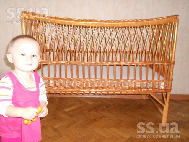 Детская кроватка из лозы (с качялкой) в отличном состоянии + матрас (2-х слойный кокосовый). |