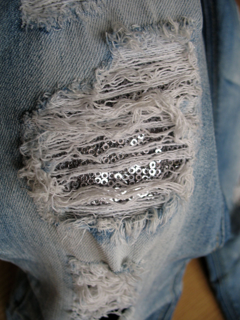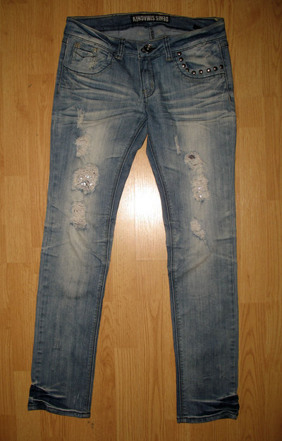 Продам джинсы Denis Simachёv 29 размер. Ткань плотная, стрейч. Длинна по поковому шву 102 см, длинна по внутреннему шву 81 см, по поясу 86-90 см, бедра 98-100 см, обхват штанины бедро 48 см, снизу заужены до 32 см. Внутри штанины под дырами подшита ткань с мелкими паетками тоже стрейч, так чтобы сквозь дырки были видны паетки. С низкой матней. Вышлю. |