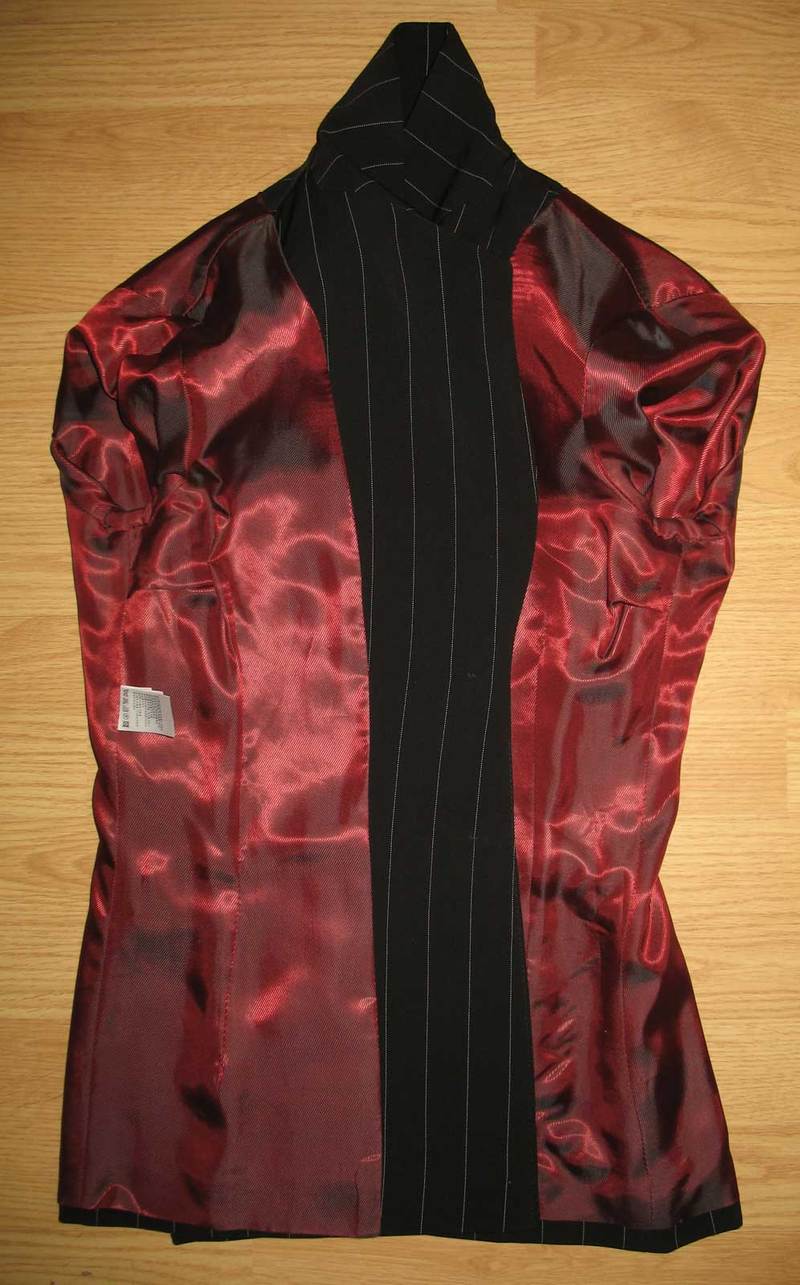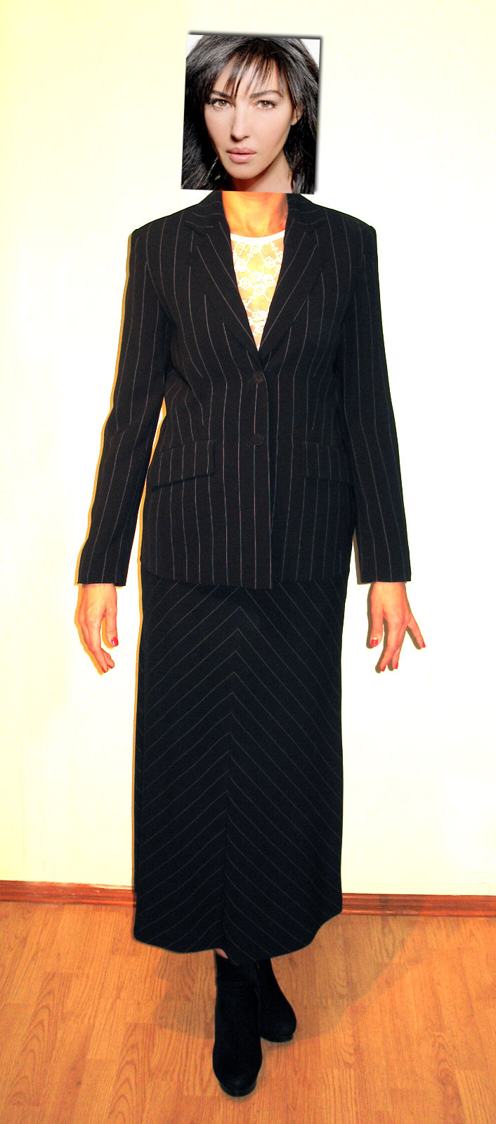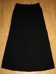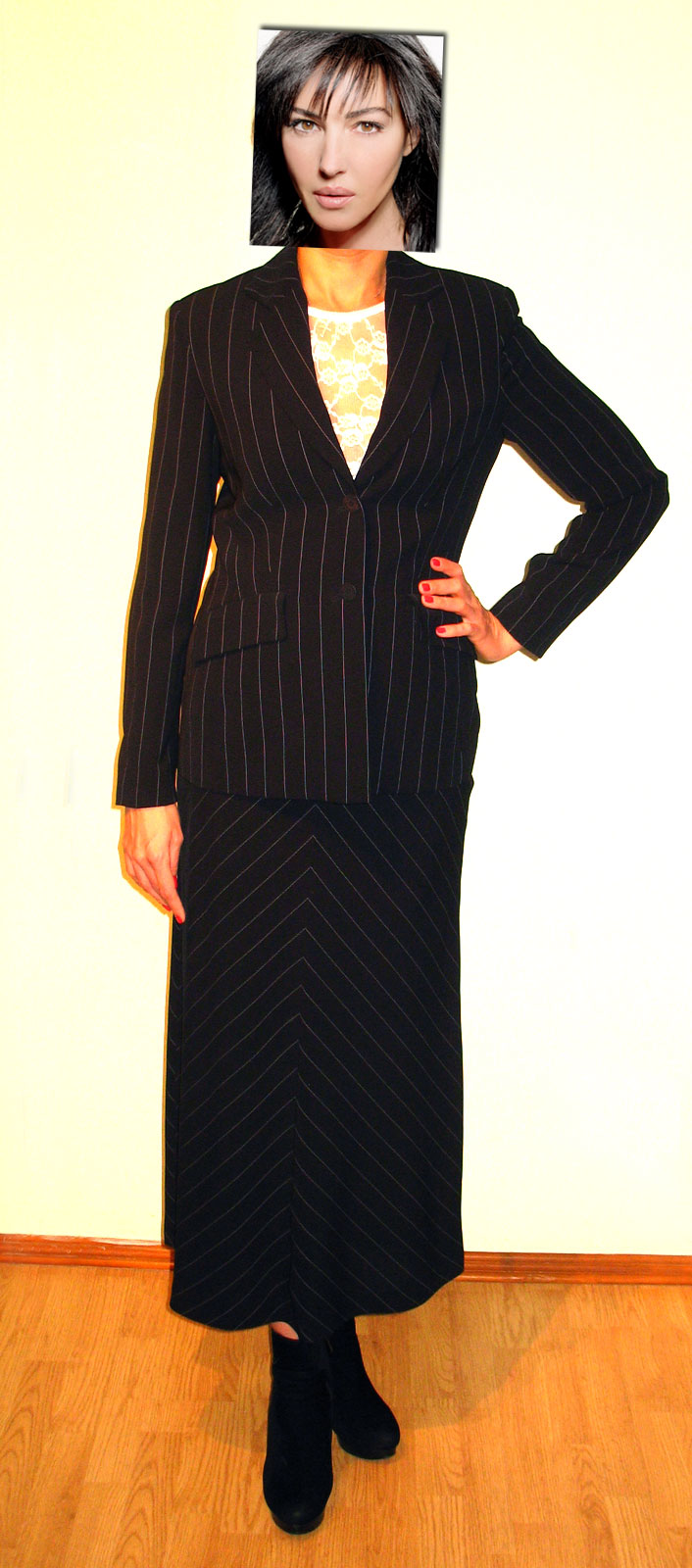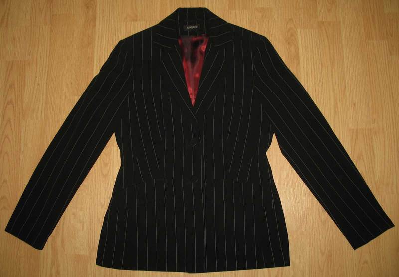 Элегантный деловой костюм на высокую стройную девушку. Практичный, удобный, не жаркий, не маркий, очень хороший костюм. В отличном состоянии. Пиджак на подкладке и юбка "годе" с подъюбником. Ткань черная в полоску (белая тонкая нить) , полиэстер 99, вискоза 1%. Размер 46-48, рост 176-180 см. Длинна юбки 96 см. ОГ 93 см, ОТ 76 см. ОБ 101. Длинна пиджака по спинке 69, длинна рукава 62 см. |