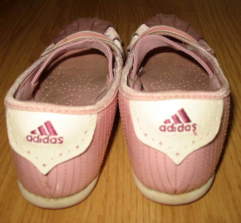 Балетки Adidas 35 размера. Длинна по стельке 21,5 см. Носок обтянут атласом, внутри мягкая ткань, снаружи лаковые, подошва мягкая резиновая. Очень хорошие, удобные, легкие. |