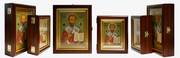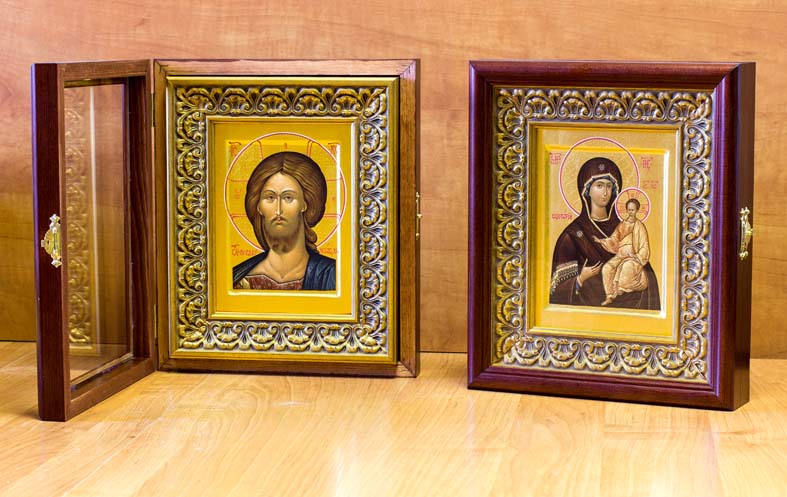 Оформление икон в киоты. Киот – с греческого "ящик". Главной целью киота является его герметичность, а, следовательно, защита иконы от попадания пыли и влаги. Расположение иконы в киоте требует соблюдения определенных правил. Мы разработали ряд технологий, сочетающих эстетическую подачу и сохранность икон разного времени создания для продления их жизни. |