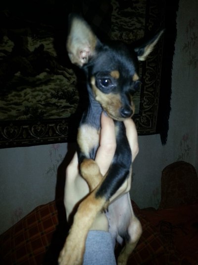 Мини той терьер девочка ищет своих хозяев.Малышке 4 месяца от титулованых родителей.Вес 1100 грамм.Прививки по возрасту, хвостик купирован, документы КСУ, клеймо. Шоу собачка. Ветеринарный паспорт, родословная.Приучена к салфетке.Милая игривая, ласковая.Есть сумочка для прогулки, костюмчики носочки.Домик.цена договорная. |
