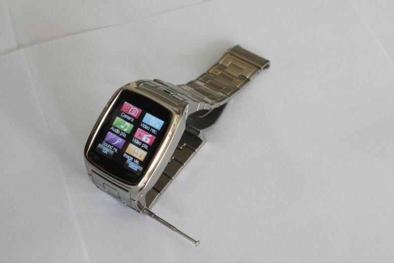 Управлять мобильным телефоном в виде часов можно при помощи пальца или же стилуса, который прячется прямо в браслете. Над дисплеем находится фронтальная 1.3 мП камера, а под ним – встроенный микрофон. Слева разместились клавиши включения, приёма звонка и порт USB со специальной заглушкой. Под аккумулятором расположены слоты для microSD и SIM-карты. На браслет выведен системный динамик, который обеспечивает громкий и четкий звук. Так что важный звонок Вы не пропустите!
