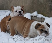 Щенки английского бульдога от Интер-Чемпиона,2 девочки, рыже белые, родились 03.09.2013г. Английский бульдог обладает ярко выраженной индивидуальностью и считается национальной собакой Англии, воплощая черты, часто приписываемые истинному джентльмену: основательность, невозмутимость, консервативность, некоторую флегматичность, с одной стороны, и аристократизм, респектабельность в сочетании с импозантностью и грубоватой элегантностью, с другой. Я буду рада, дать Вам более подробную информацию! Щенки привиты по возрасту, клеймо, сопровождение, консультация, родословная. |