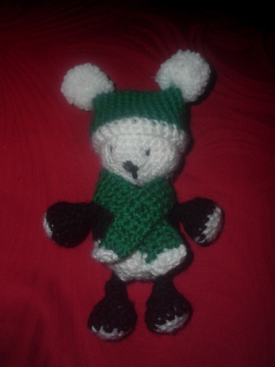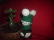 На изготовление талисмана уходит один полный день или два, если вязать его после учёбы. Материал – полушерсть, когда прислоняешь его ко щеке, чувствуется тепло и уют. Шапочка снимается, шарфик прихвачен. Цвет шарфика и шапочки возможен и другой (красный, например).