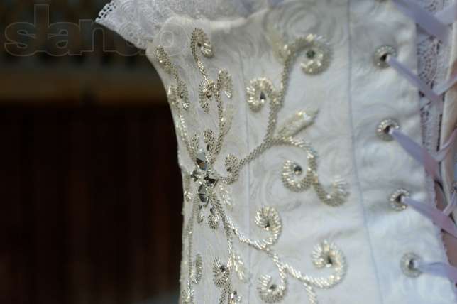 Очень красивое платье ТМ Slanovskiy. Платье одевалось один раз, не венчанное. Одно платье - два образа (можно как с корсетом, так и без). Материал – итальянское кружево, расшито кристалами Swarovski и бисером.Корсет на шнуровке (атласные ленточки) по бокам.Шлейф при желаниии можно подстегнуть.Платье прошло химчистку, в идеальном состоянии. Размер 44.В комплекте с платьем идет фата, что на фото. |