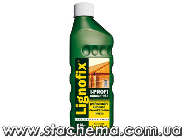 Пропитка (антисептик для древесины) Lignofix I-Рrofi концентрат (Лигнофикс И-Профи концентрат) это современное концентрированное средство на водной основе для профессиональной обработки уже пораженного насекомыми-вредителями дерева (шашель, короед и пр.) с целью их уничтожения и последующей профилактической защитой от них (например, полов, деревянных строительных конструкций, частей строений и облицовки) внутри и снаружи здания. Lignofix I-Рrofi концентрат: гарантировано ликвидирует дереворазрушающих насекомых; абсолютно безопасно для теплокровных (людей, животных и т.д.); работает узконаправленно против хитиносодержащих насекомых на всех стадиях их развития (яйца, личинки, куколки, взрослые насекомые), блокирует метаморфозы насекомых и образование у них хитина, стерилизует взрослых насекомых. Товар производится в Чехии, разрешен для использования в Украине, о чем есть соответствующие документы. Официальный представитель чешского производителя, без посредников. Поставляется в виде концентрата. Концентрат разбавляется водой 1:4. 5 литров раствора достаточно для обработки поверхности древесины площадью до 30 кв.м. Для обработки древесины обязательно использовать раствор антисептика, а не концентрат! Стоимость концентрата: тара 0,5 л – 207 грн., 1 л – 395 грн. Доставка товара осуществляется по всей территории Украины службой экспресс-доставки Новая Почта, оплата – при получении товара.