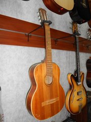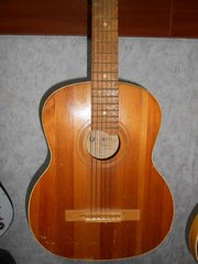 Гитара Черниговской музыкальной фабрики, 1993 год производства, Состояние на Твердую 5, идеальность внешнего вида видно на фото, единственный нюанс это незначительная трещинка на передней деке под грифом, она качественно проклеена и практически незаметна, на звук абсолютно не влияет и тем не менее предупредить нужно)) Стоят Металлические струны! Очень звонкая и звучание очень чистое, много гитар повидал и гитары с таким звуком встречаются Очень Редко! Колки держат строй Отлично и это Огромный плюс для гитары, так как колки со временем имеют свойство "слизываться", а здесь механика как новая поэтому с настройкой гитары проблем не будет. По краю гитары идет Белый кантик с эффектом слоновой кости, благодаря ему гитара выглядит намного круче и более стильно! Гитара идеально подойдет как для начинающего так и для опытного гитариста! Рекомендую эту гитару тем, кто не хочет при обучении игре на гитаре испортить свой музыкальный слух из-за искажения музыкальной гаммы, что не редко встречается на современных "китайских" гитарах и гитарах подозрительных производителей. Купив эту гитару вы приобретете качественный товар который , как всем известно, делался не на количество, а на качество!