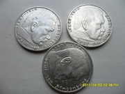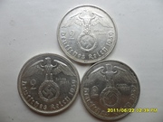 Продам как вместе, так и поштучно несколько серебряных монет фашистской Германии времён Третьего Рейха, в идеальном внешнем и коллекционном состоянии,100% оригинал, разных монетных дворов, годов выпуска и разных тиражей и соответственно разной цены :