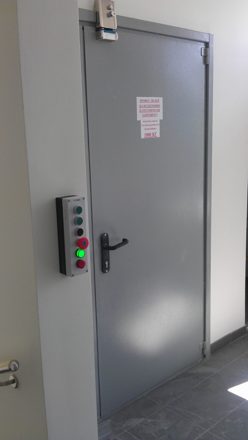 6.Двери шахты противопожарные IE-60 – 2 шт. (распашные двухстворчатые с электрическим замком блокировки, открываемые вручную на каждой остановке)