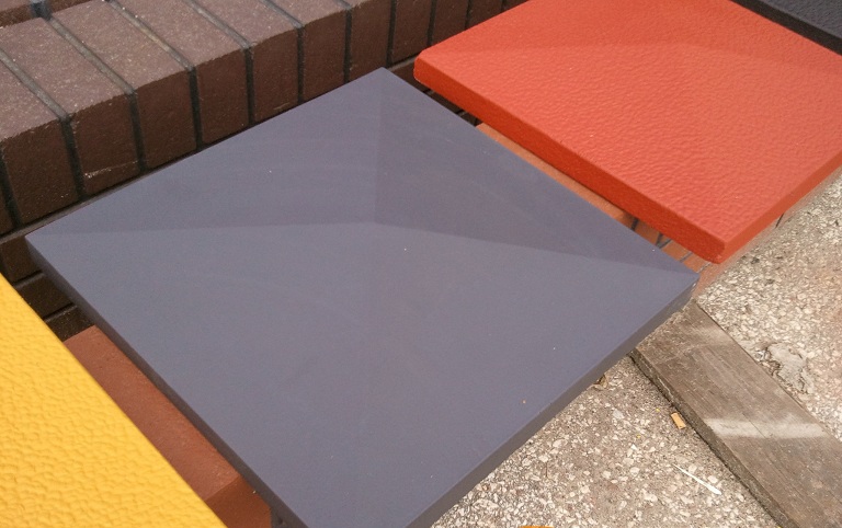 Все столбики, крышки и фундамент имеют цветное атмосферостойкое покрытие по всей лицевой поверхности, причем цвет покрытия можно заказать согласно веера цветовой гаммы красок.