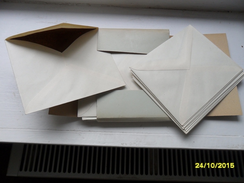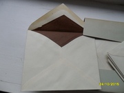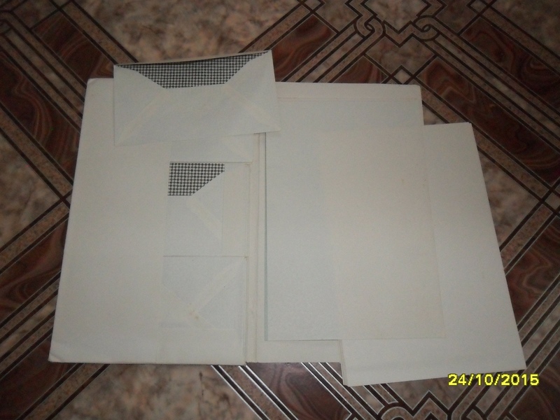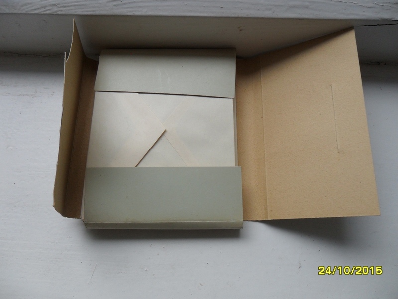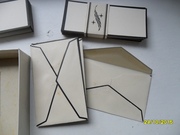 Первый комплект состоит из 23 конвертов размером 18х10см. и 25 листов бумаги размером 26х17см.