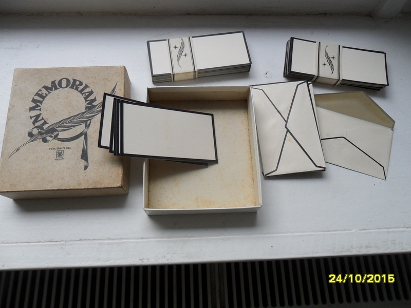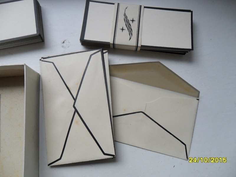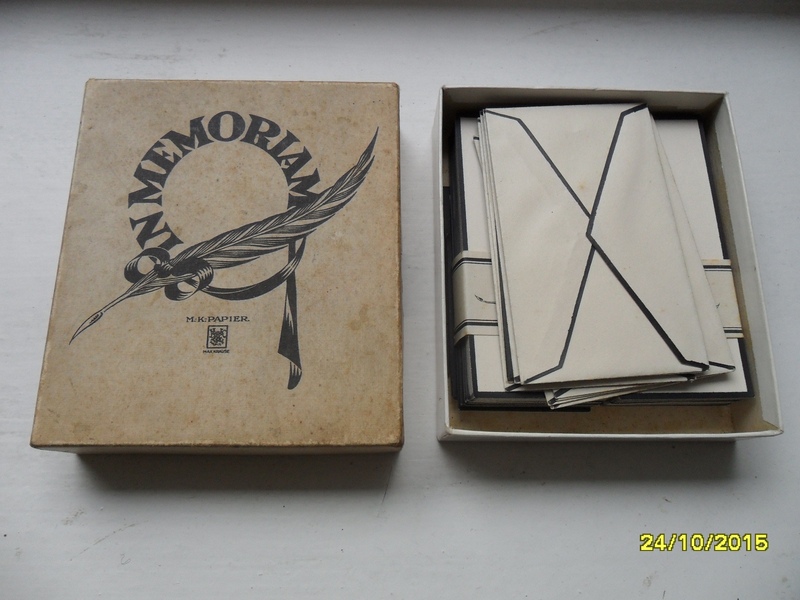И конверты и бумага в чёрной траурной рамке и плотной коробке.
