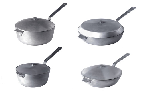 Алюминиевые литые сотейники разных размеров. Ёмкостью от 2 до 4 литров. Надежная и добротная посуда. Не боится открытого огня. Качество продукции защищено гигиеническим заключением. |