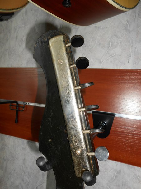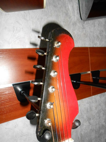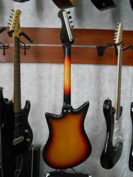 Дека, с прямыми, оригинальными для Совмузпромовских гитар рогами, которые были по форме скопированы с одного из "итальянцев".