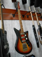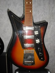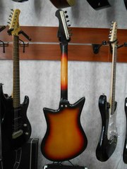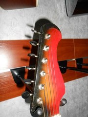 Обильно хромированные струнодержатель с тремоло, как и бридж с полным комплектом регулировок и крышкой, сильно напоминают Тонико-Музимовский комплект. Многих Коллекционеров и Любителей Ретро Гитар, заинтересует данный экземпляр, начинающие гитаристы тоже будут довольны данной гитарой))