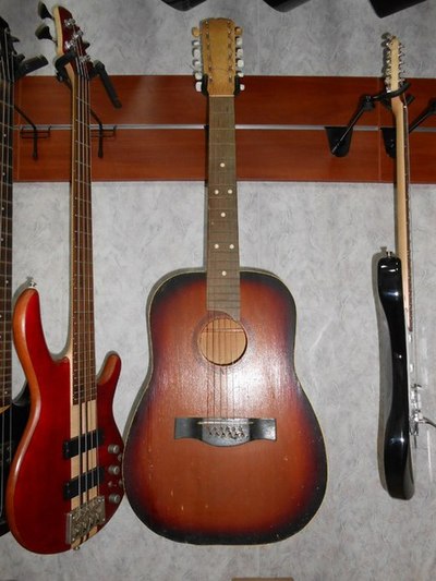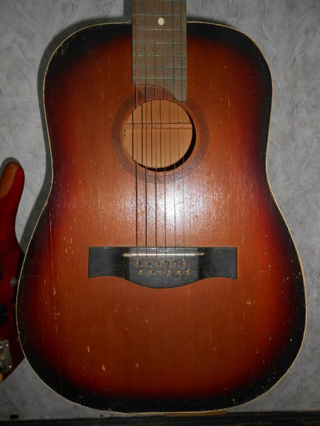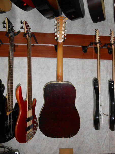 Гитара Черниговской музыкальной фабрики, 12 струнная, Сейчас гитара 6 струнная, при желании можно будет поставить дополнительные струны и гитара превратиться опять в 12 струнку! Внешний вид видно на фото. Верхняя дека сделана не из фанеры, как часто бывает у подобных гитар, а из цельного массива Ели, поэтому звучание намного чище и более глубокое. Колки держат строй Отлично, кстати, даже если Вы не планируете ставить на гитару дополнительные струны и делать из нее 12-ти струнку, сейчас 6 колков являются запасными и при необходимости на них можно будет перекинуть струну, а это Огромный Плюс для Гитары. Очень звонкая, стоят Новые Металлические струны, Данная гитара отлично подходит для аккомпанемента, из-за чего любима бардами во всем мире.