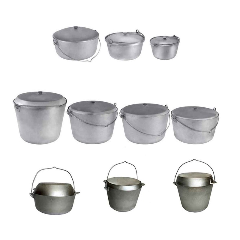 Алюминиевые рыбацкие казаны ёмкостью от 12 до 1.5 литра. Выпускаются в двух комплектациях : с крышкой алюминиевой стандартной и с крышкой-сковородкой. Все это Вам нужно, потому что наша продукция не боится открытого огня, хорошо моется, предназначена для длительной эксплуатации. Цена разумная, а качество отменное. Надежная и добротная посуда. Качество продукции защищено гигиеническим заключением. |
