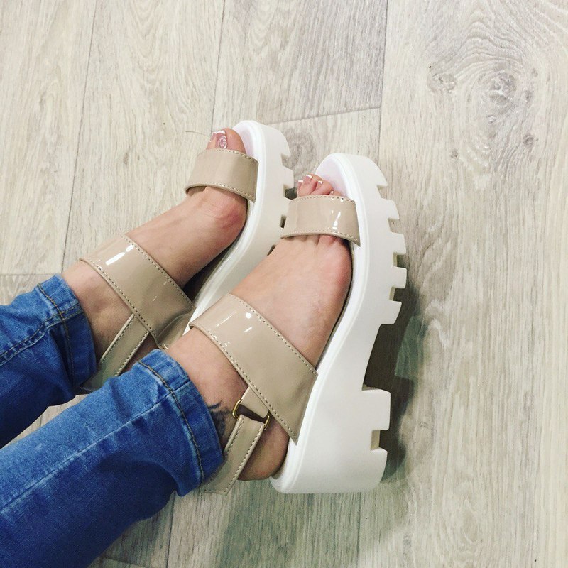 Лаковые босоножки женская обувь цвет светлый беж новые тракторная подо - Женская обувь