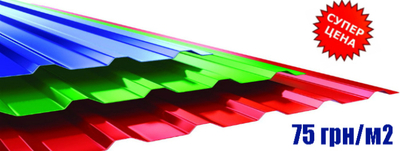 Металлочерепица от 100 грн/м2 Профнастил ПС-10 75 грн/м2 Профнастил ПС-14 79 грн/м2 Битумная черепица от 180 грн/м2 |