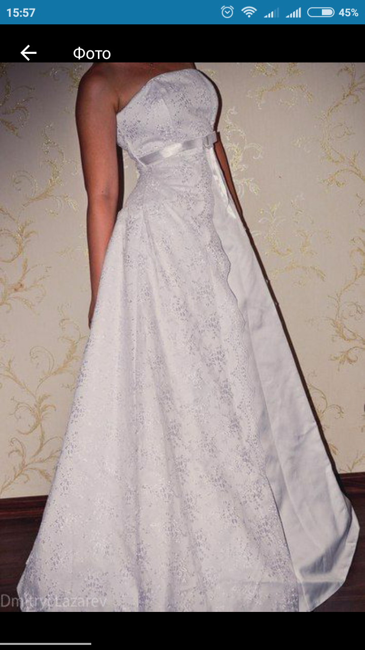Платье свадебное не венчаное. Размер универсал 42-46. На шнуровке. В подарок круг для формы юбки. |