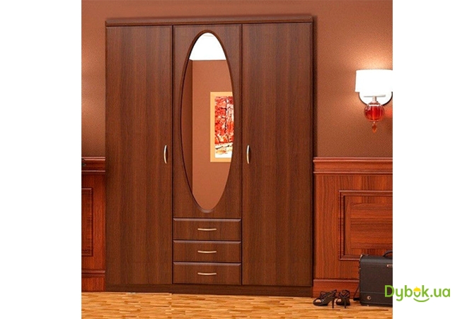 Шкаф Рось 1.5 — компактный, недорогой, современный шкаф от фабрики БМФ. Корпус мебели изготавливается из ДСП, фасады — из МДФ. Особенность прихожей Рось — ее доступная цена и небольшой размер, благодаря которому она подойдет для квартиры любого размера и комплектации. Прихожая БМФ Рось 1,5 м закрытая - это оригинальный и практичный вариант обустройства комнаты. Выполнена в насыщенном темно-коричневом цвете и имеет изящный и элегантный внешний вид. В состав данной модели входят: объемный шкаф, в котором есть полка для головных уборов и шарфов и штанга с вешалками для верхней одежды; три объемных тумбы для бижутерии и разных мелочей. Отличительной чертой этой модели является овальное зеркало на дверце. Довольно компактная и многофункциональная. Приятная и удобная в использовании. Станет роскошным и уникальным украшением любого дома.