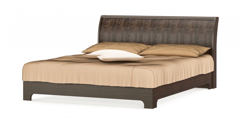 Двуспальная кровать с изголовьем, обитым искусственной кожей. Классическая кровать от производителя МЕБЕЛЬ СЕРВИС — отличное дополнение интерьера спальни.