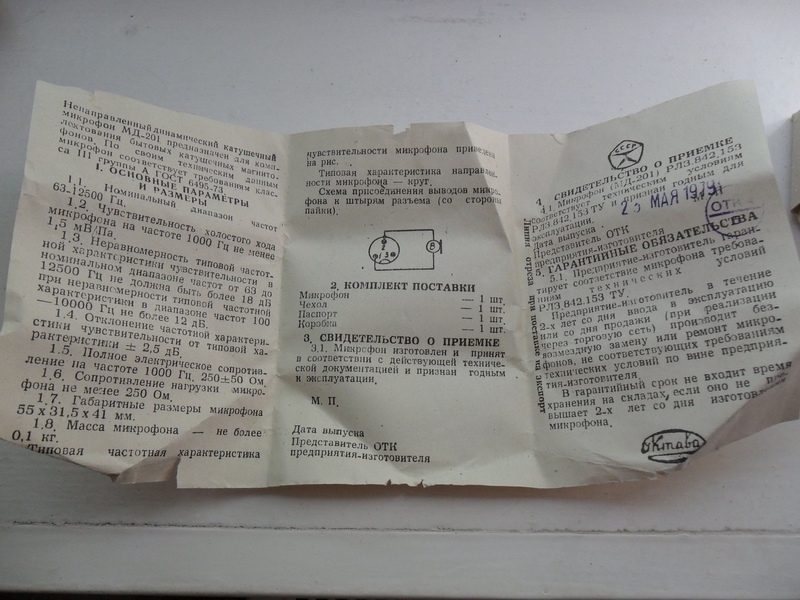 Продам два микрофона МД-201 "Октава" 1979 года выпуска производства СССР со знаком качества в отличном рабочем состоянии.